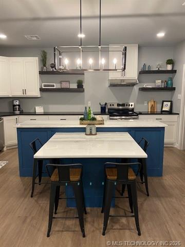 this like-new barndominium combines modern finishes with an unbeatable lake-area location. The 3-bedroom, 2.5-bath home offers an open, comfortable layout featuring vinyl plank flooring throughout and a stylish kitchen with a center island and granite countertops, perfect for gathering and entertaining. A standout feature is the large game room, complete with glass doors that raise open during nice weather, seamlessly blending indoor and outdoor living and enhancing the entertainment space. Situated less than one mile from Lake Eufaula and just a couple of miles from Nine Marina, this property offers quick access to boating, fishing, and local dining. With its modern design and desirable location, this home is ideal as a primary residence, weekend retreat, or income-producing vacation rental. Call to schedule a viewing and please note all furnture can be purchased for an additional price.