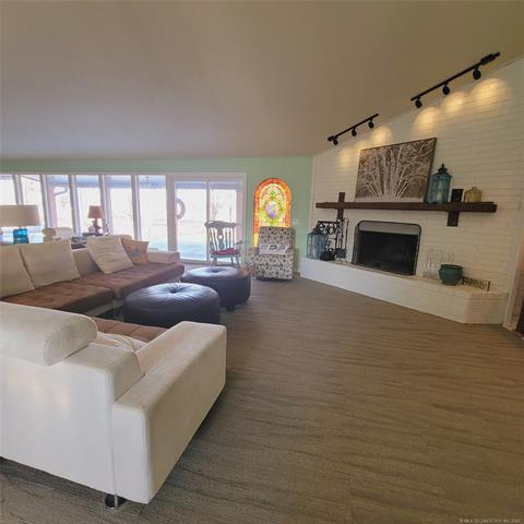 Don't miss this rare opportunity to own a beautiful waterfront home in highly sought-after Longtown Estates. Perfectly positioned to capture stunning lake views, this property offers the ideal blend of comfort, convenience, and outdoor living. Step inside to an inviting open-concept floor plan featuring a spacious living area with a cozy fireplace and a wall of windows showcasing breathtaking water views. The large kitchen flows seamlessly into the living space, making it perfect for entertaining family and friends. Enjoy relaxing evenings on the expansive covered back patio overlooking the gently sloping backyard that leads directly to the water. The chain-link fenced yard provides added flexibility for pets or play, while paved roads guide you smoothly all the way to the driveway for easy access year-round. Even better, this property includes a private boat slip with lift--making lake days effortless and enjoyable. Waterfront homes in this prime location rarely become available. Schedule your showing today and experience lake living at its finest!